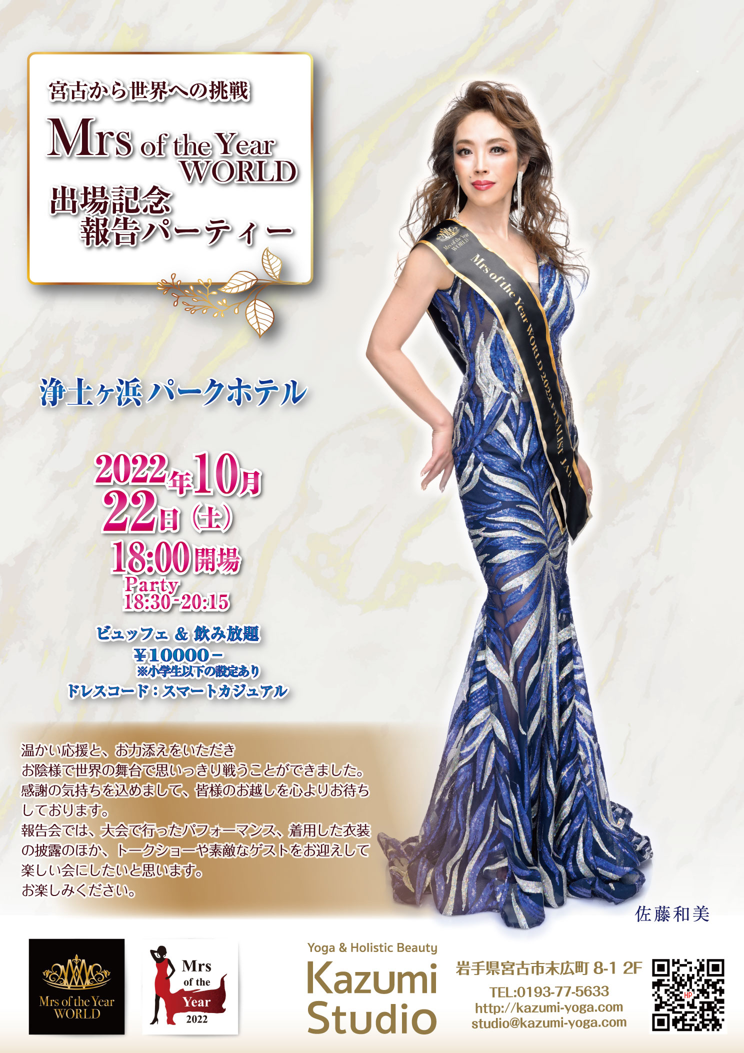 Mrs Mr of the Year WORLD 出場記念報告パーティーを開催します。