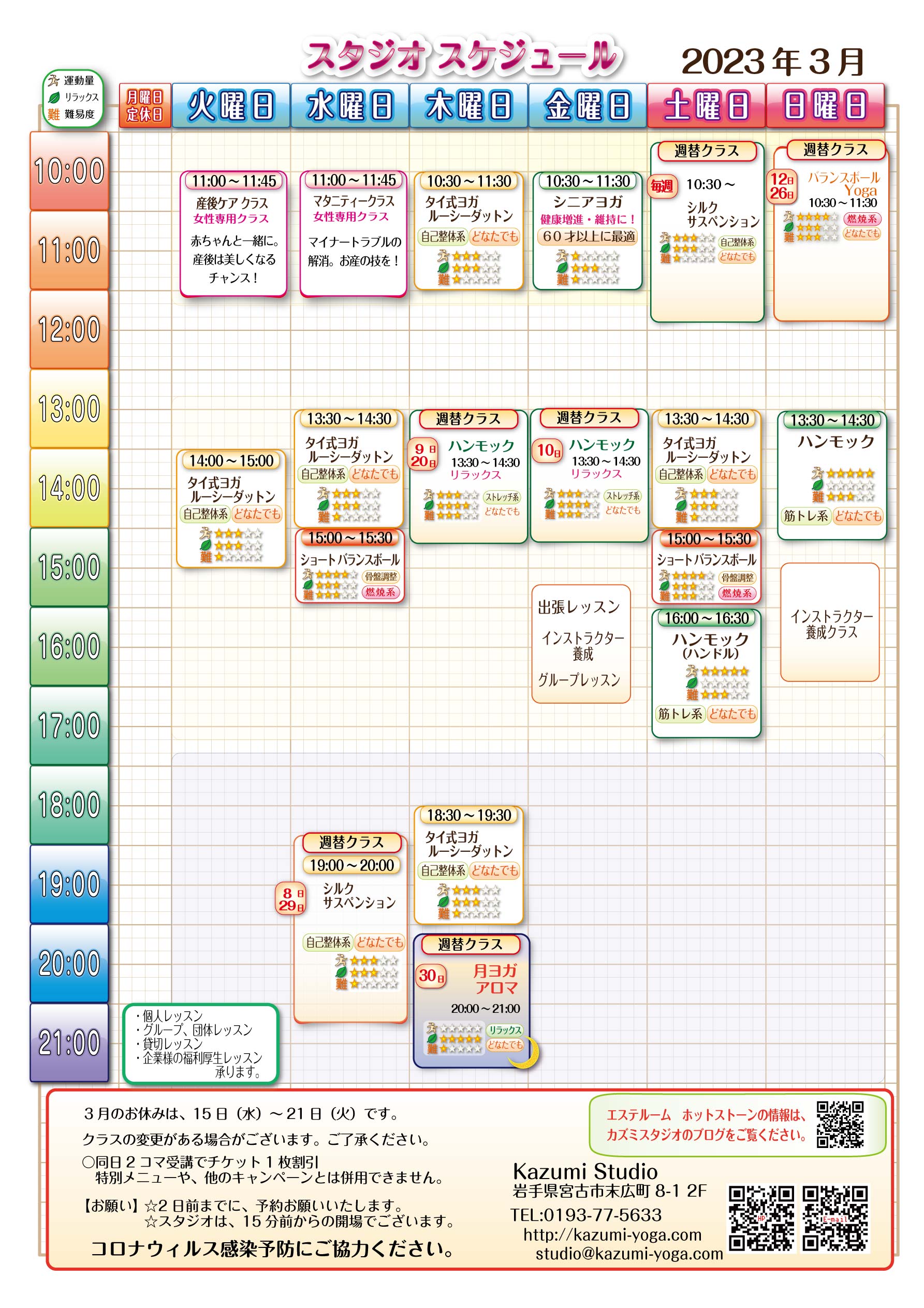 3月のスタジオスケジュール